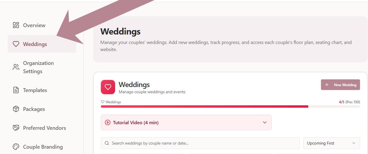 2. Navigate to Weddings